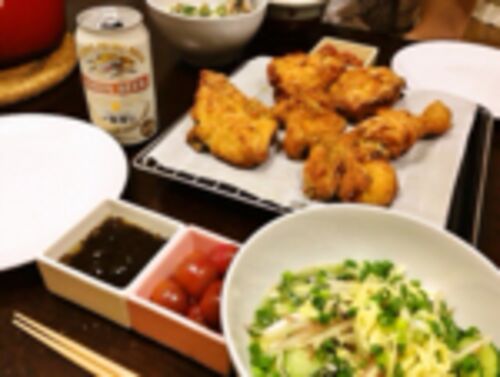 ケンタッキーオリジナルチキン 冷汁(米抜き) ミニトマトのマリネ もずく酢 南国フルーツとライムムースのタルト(キルフェボン)