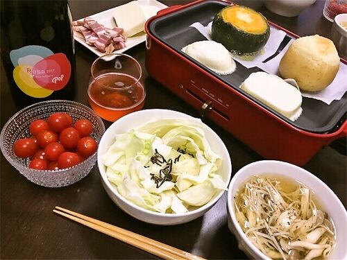 かぼちゃ・じゃがいも丸ごとグラタン カチョカヴァッロとパンチェッタ オサワイナリー ローザポップ2017 塩昆布のせきゃべつ、トマト しめじとえのきのスープ グラタンはいずれも皮が器になっていて、丸ごとぺろり食べられるもの。どちらも野菜の甘みが生き…