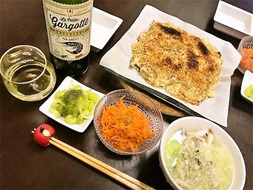 スコップコロッケ(塩たらとじゃがいも) にんじんサラダ セロリのレモンマリネ 鷄だしともち麦としめじときゃべつのスープ