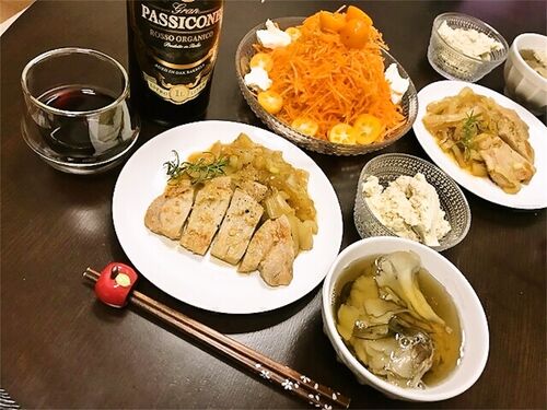 塩麹ポークジンジャー(ローズマリー) にんじんと金柑とクリームチーズのサラダ おからとスモークオイルサーディンのサラダ まいたけステーキスープ あさイチでたまたま見かけた生姜焼き+ローズマリーを参考にしてみたらとっても美味しかったです。ハーブ・ス…