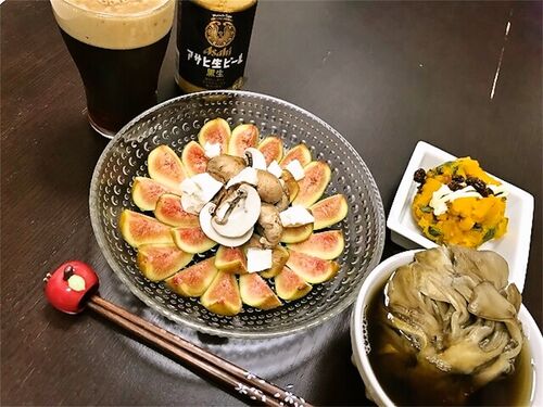 いちじくマッシュルームクリームチーズ かぼちゃの薫味サラダ まいたけステーキスープ LINEくじで当たったアサヒ黒生をアールグレイマジックに 蒸したかぼちゃに薫味塩とモルトビネガーで下味つけてフライドオニオンを加えたサラダ、うんまいです。マヨネー…