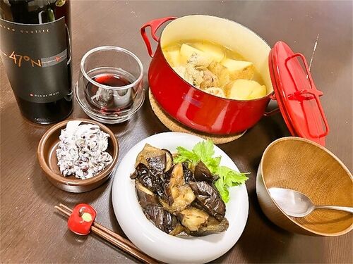 手羽元と根菜のヒマラヤ鍋 米なすクミンみそ炒め あずきマスカルポーネ