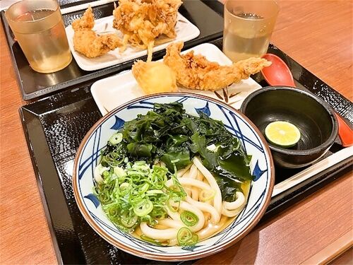 丸亀でかけ(並)、かしわ天、半熟たまご天